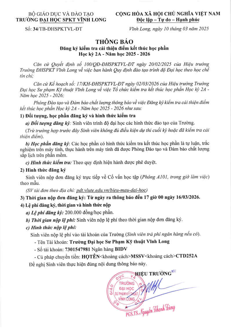 TRƯỜNG ĐẠI HỌC SƯ PHẠM KỸ THUẬT VĨNH LONG