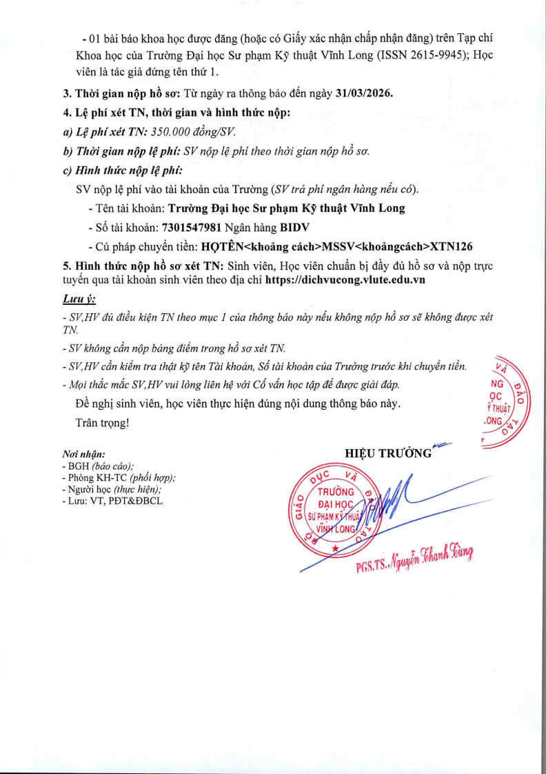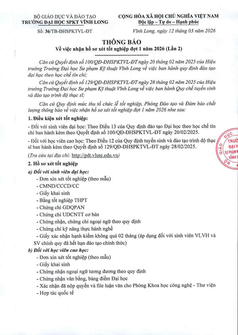 Thông báo về việc nhận hồ sơ xét tốt nghiệp đợt 1 năm 2026 (Lần 2)